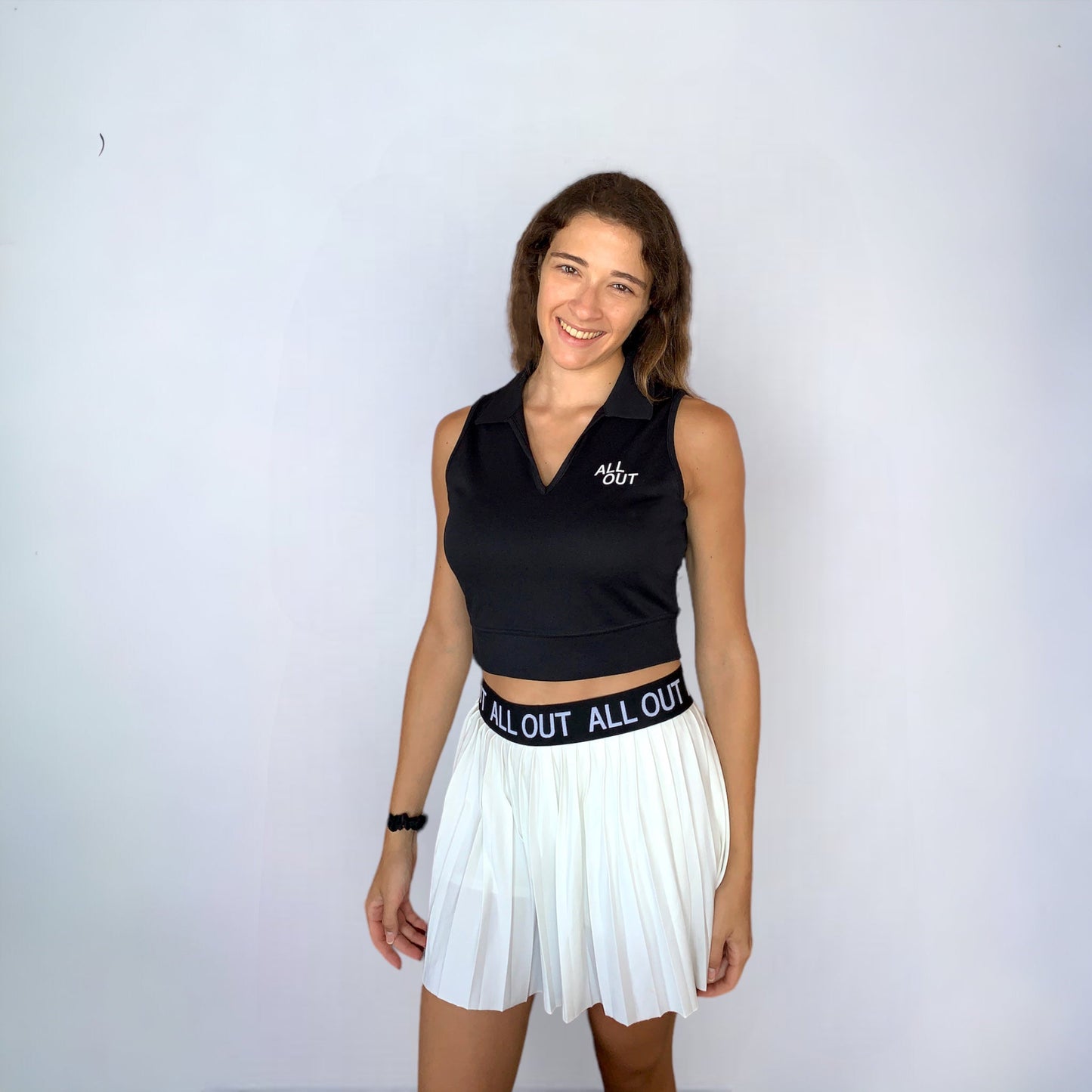 Elevate your activewear game with the Sleek crop polo top, engineered from premium sweat-wicking fabric. The classic design of the ribbed collar tennis polo shirt is met with a stylish twist in crop cut, a perfect blend of performance and fashion. Experience unparalleled comfort and style while staying dry during your workouts, tennis & padel games.